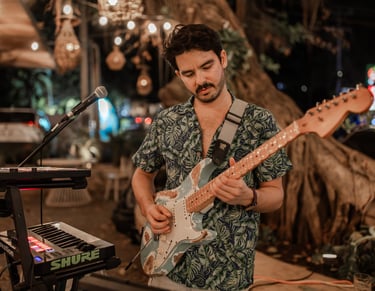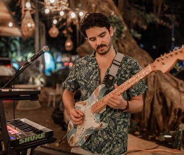 Música en vivo con guitarra, piano, voz y percusión, fusionada con atmósferas electrónicas suaves y melódicas. Ideal para un ambiente sofisticado y acogedor para restaurantes de lujo y hoteles boutique. Permite que la música eleve cada momento y garantice una experiencia memorable y refinada.